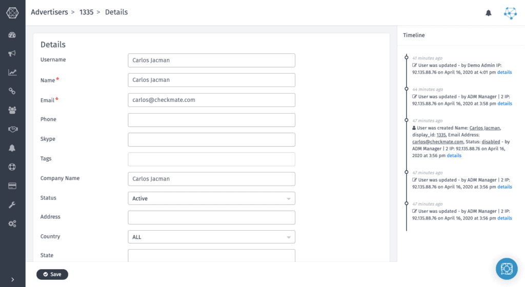 Now you can access an easy timeline on Each Edit page, so you can keep track of all the updated you had made on the advertiser.