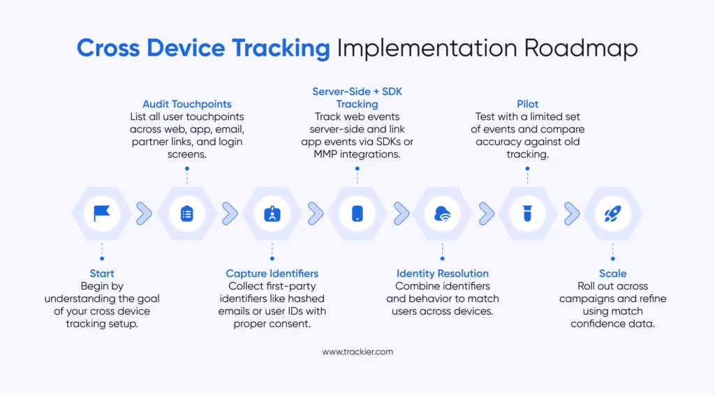 Cross device tracking improves attribution accuracy by linking all user interactions across phones, laptops, tablets, and other connected devices into one continuous path. When you can see the entire sequence, you no longer treat a mobile click and a desktop purchase as two unrelated events.